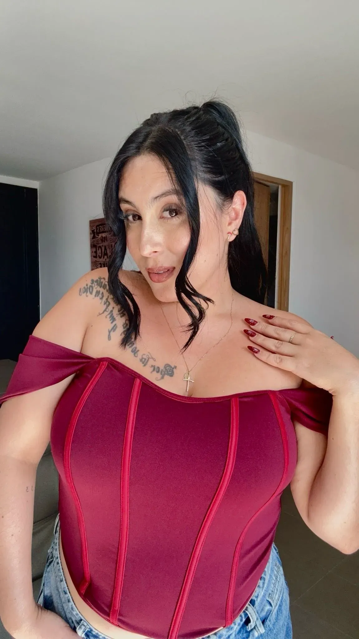 Este corsé off shoulder en tono vino fue diseñado para abrazar tu cuerpo con intención, no para corregirlo. Su estructura define el busto, estiliza la silueta y se adapta a tu medida real, respetando tu forma y tu proporción. Las mangas caídas enmarcan los hombros y el escote con fuerza y sensualida...